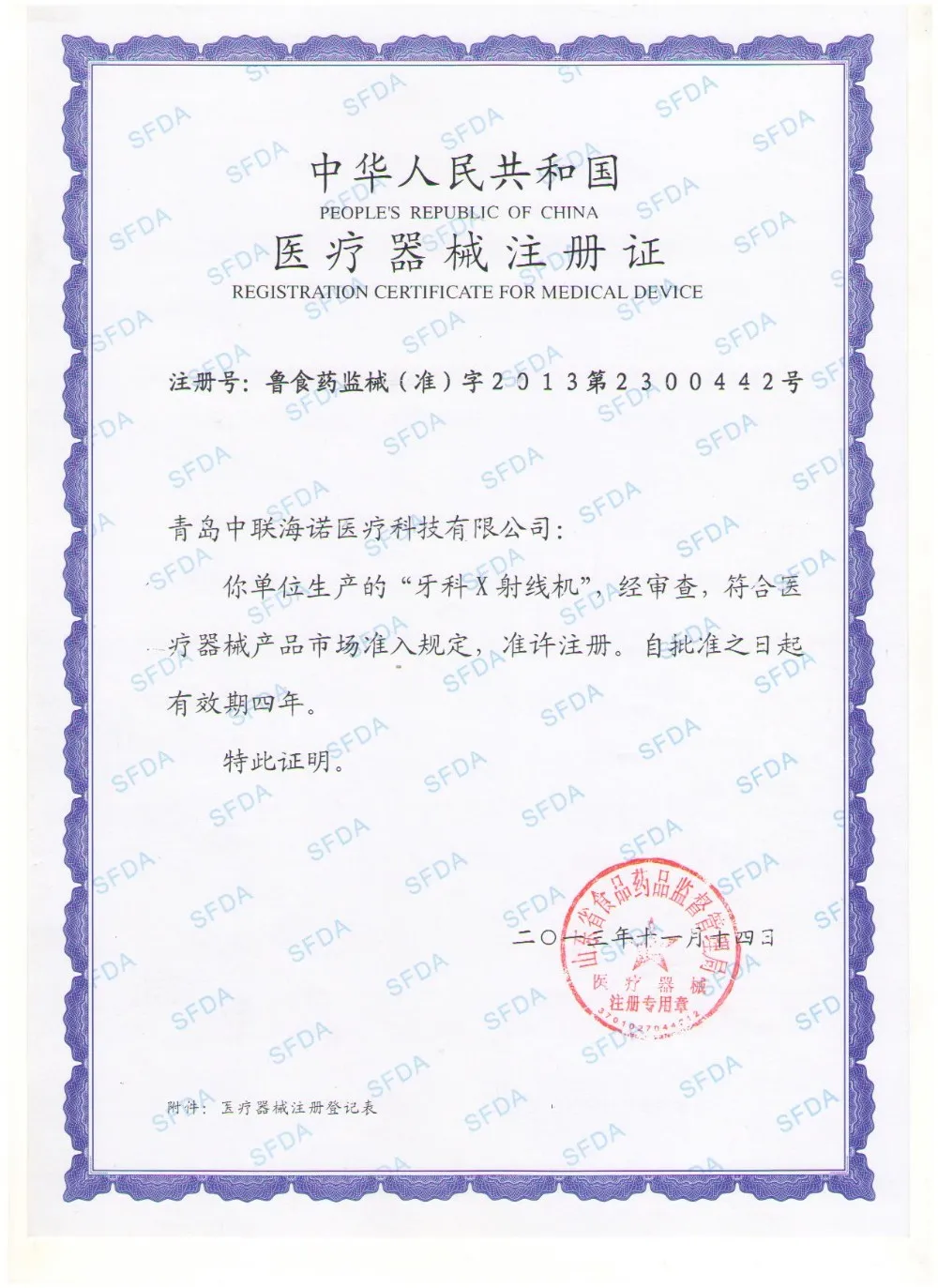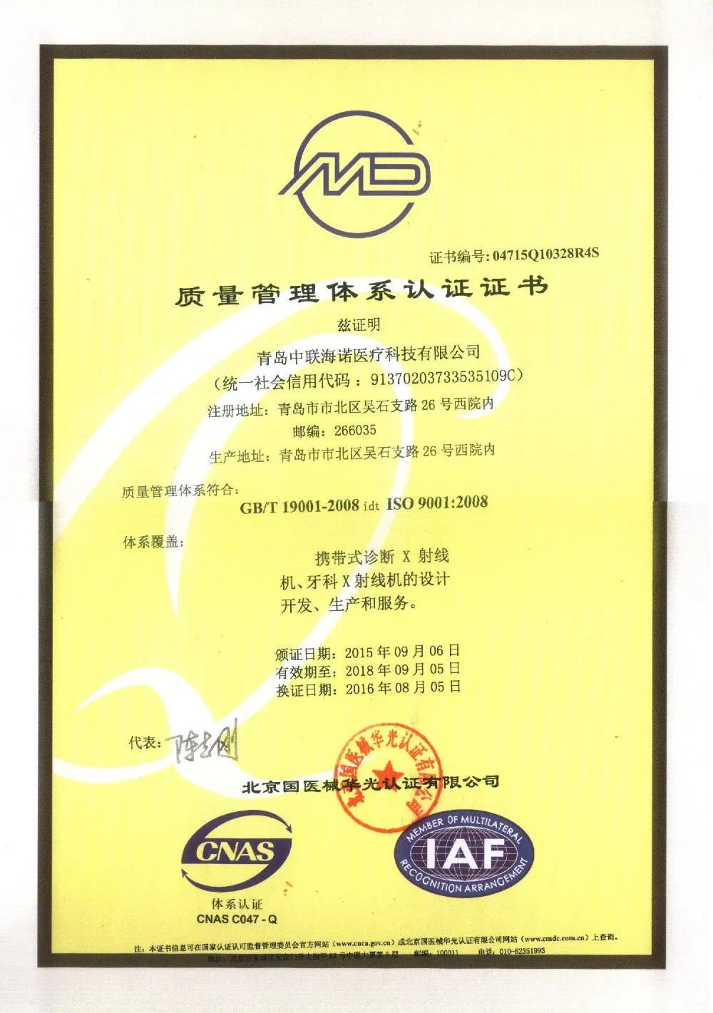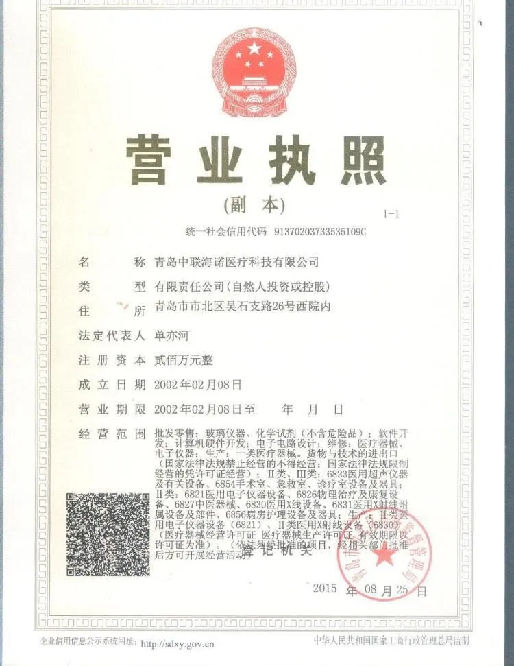 Qingdao Zhonglian Hainuo Medical Technology Co., Ltd. was founded in 1958. So far, our company has had more than fifty years of history. Over the past 50 or more years, we have been committed to the R&D and production of medical X-ray machines, dental digital imaging systems, X-ray protective equipment, dental chairs and other products. With years of manufacturing experience along with excellent quality, advanced services and competitive prices, HAINUO has won numerous customers' trust and support. Our products has been approved by CE, company passed the Qualiy Management System of ISO 9001.