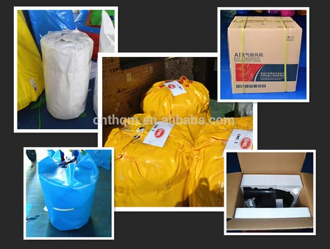 Packing:Inflatable items are packed in strong PVC tarpaulin bags; blowers in cartons.