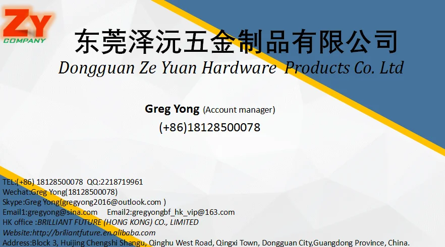 Company name | Dongguan Ze Yuan Hardware Products Co. Ltd. |