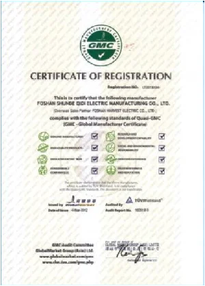 Foshan Harvest Electric Appliance Co., Ltd, located in the middle part of beautiful and affluent Pear River Detal of Guangdong, close to HongKong and Macau. Transportation by land or sea is convenient.