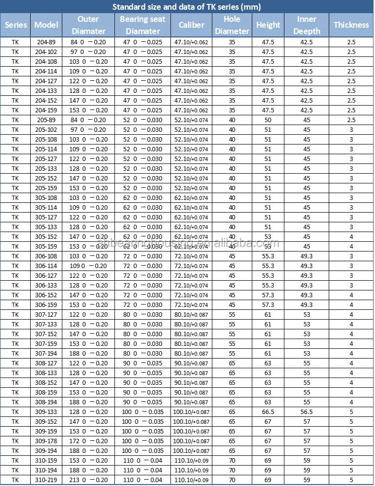 4. Standard size and data of TK series:
