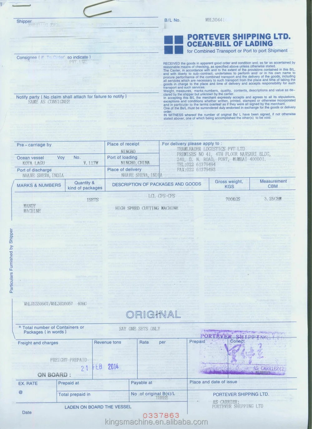 Weight of Machine |