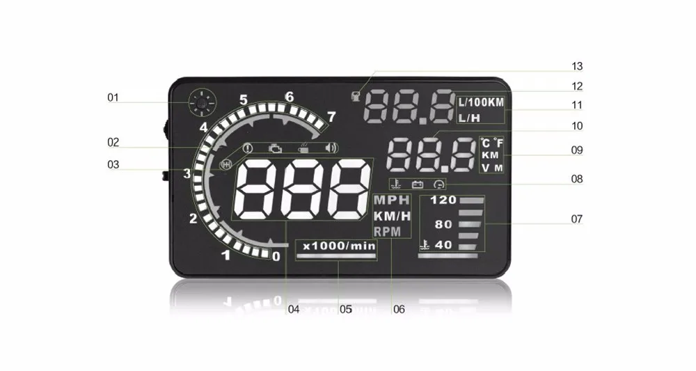 This product is for drivers safety, at high speeds, especially in high-speed driving at night, in order to avoid the driver to look down their head to watch the instrument, and decrease car accident.