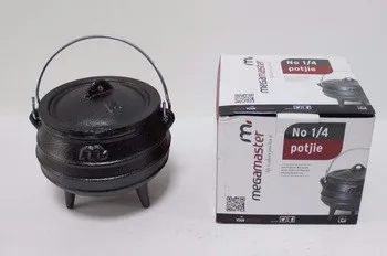 1. 3 legs Footed Camp Small Cast iron Stock fire Potjie Cast iron Cauldron for Picnic is made from pure grey cast iron and comes in many sizes.