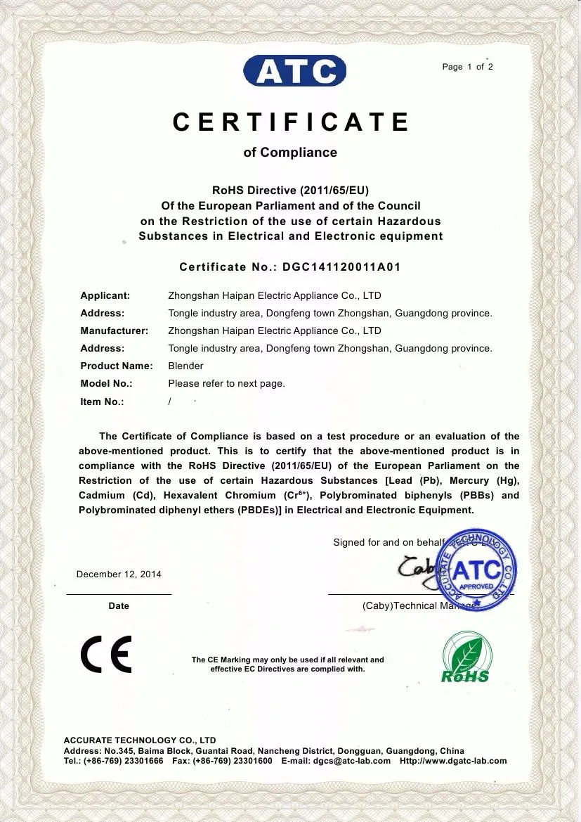 | Overcurrent protection | inside the blender housing | power off once overcurrent, safe | |