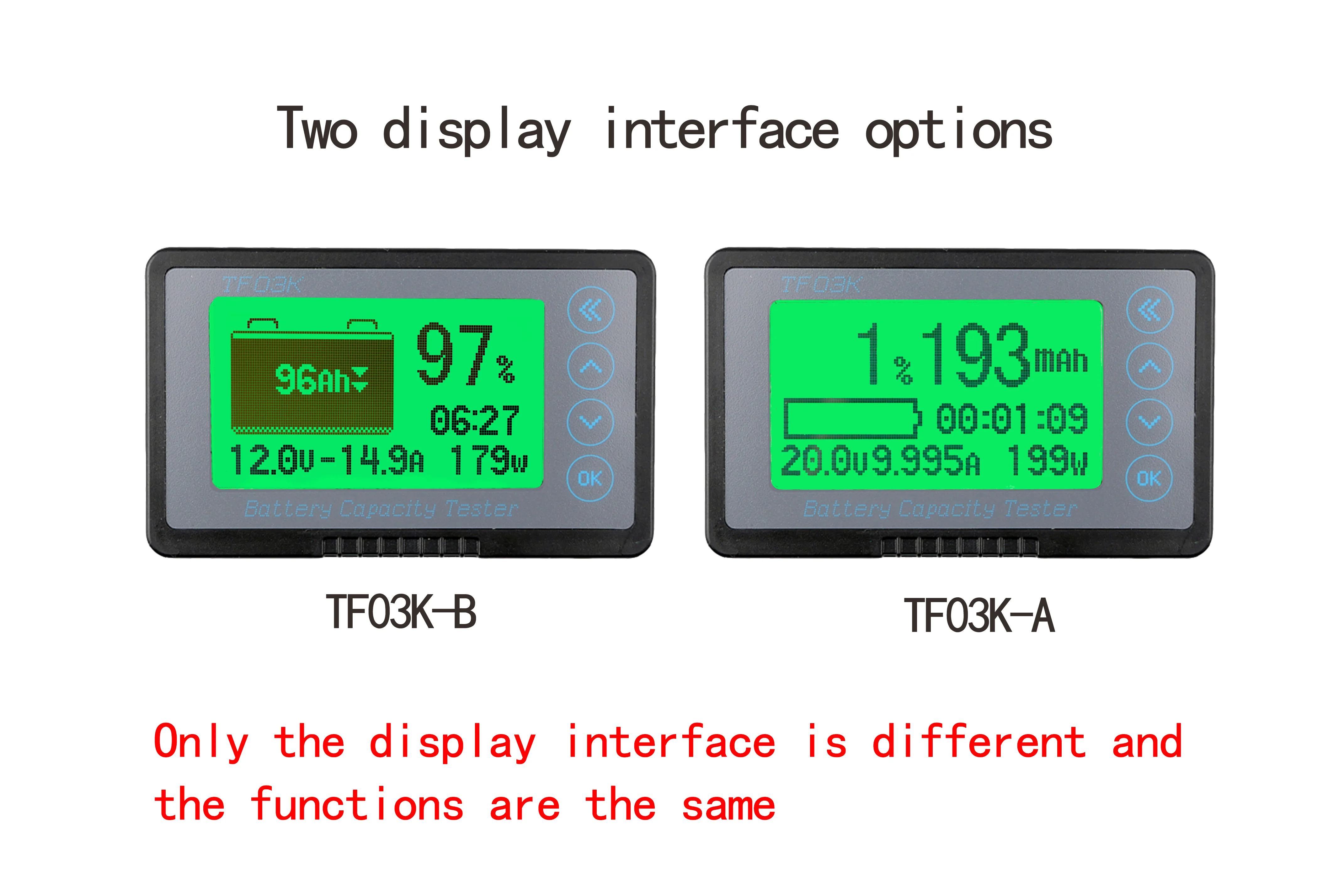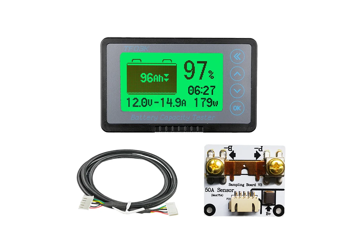 TF03K is a kind of high accuracy current type battery indicator, TF03K can test the voltage, current and capacity of lead-acid/lithium-ion battery, and display them with intuitive battery symbol and percentage. Users can know the state of battery in time. TF03K has function of memory.This battery indicator is suitable for mobile and portable equipments、ups、electric vehicles、ebike、 battery cars、balance cars、cleaning machines and so on.