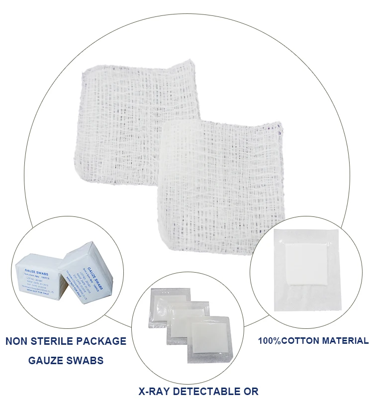 | description | surgical absorbent medical sterile 100% cotton x-ray detectable Gauze swab sponge is made of 100% cotton absorbent bleached gauze by cutting and folding. |