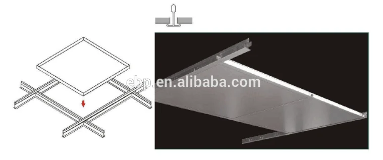 Metal spandrel ceiling system is made from aluminum alloy with a piece of acoustic tissue on the back of the ceiling tiles.Usually they are perforated on the surface.Click here fro catalog.
