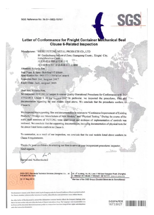 ISO 17020 accreditation of inspection agency | UHF RFID E seal can't be copied because of the Unique TID code. | ||||||