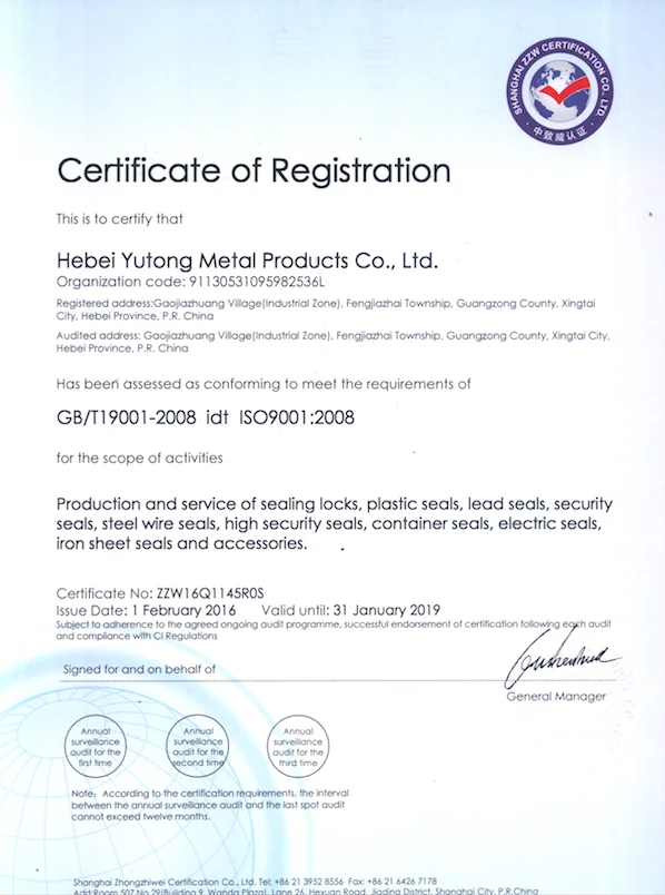 ISO 9001.2008 certificate | UHF RFID E seal can enhance the efficiency of Customs clearance. | ||||||