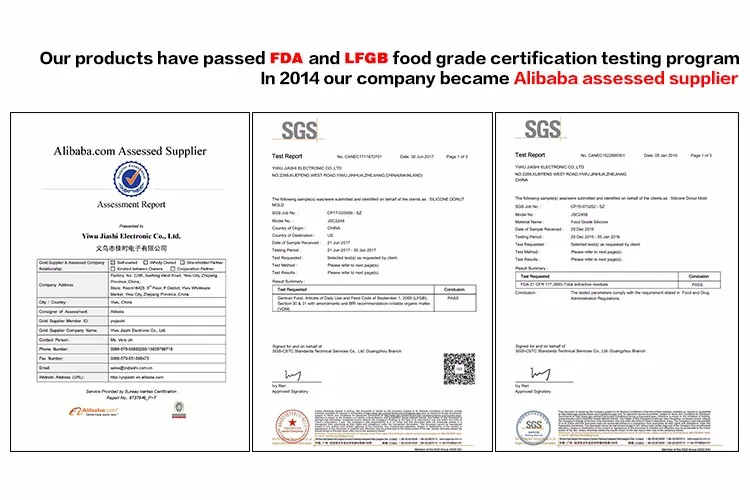 We provide all services beginning from creating designs, then manufacturing, sales and after-sales. All products can pass the food grade authoritative tests , and also can reach LFGB or DGCCRF standards if customer requests. Our company became a member of the Alibaba’s "Assessed supplier" from 2014.