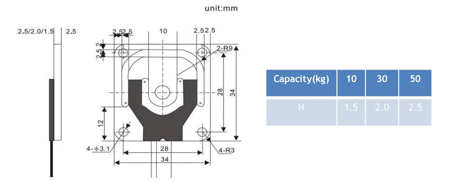 Capacity: | 10 ,20, 30, 50kg | Safe overload: | 120%FS | ||