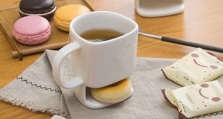 1 This cookie mug has a cookie holder, you can put the biscuit into it.