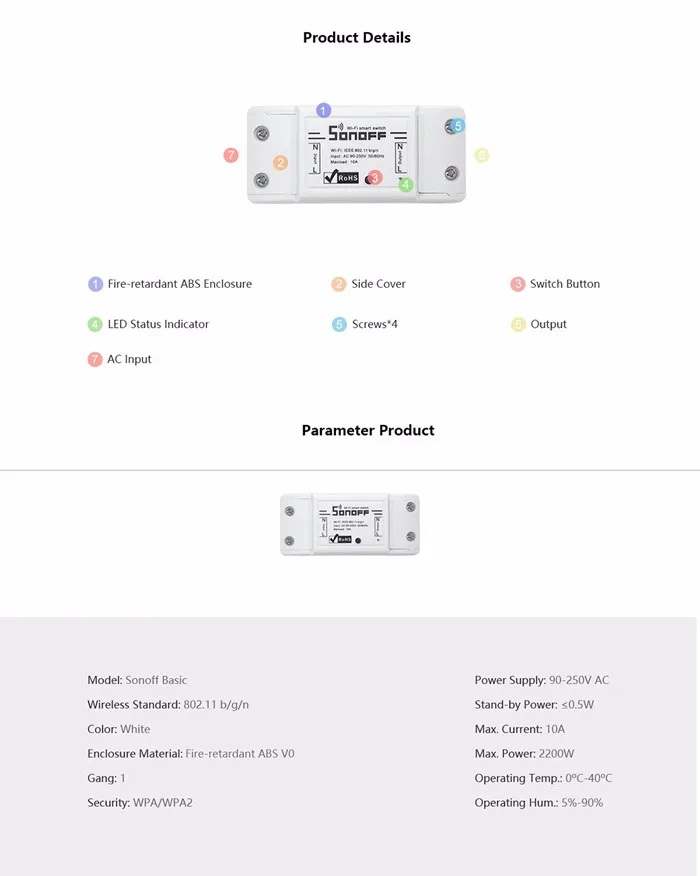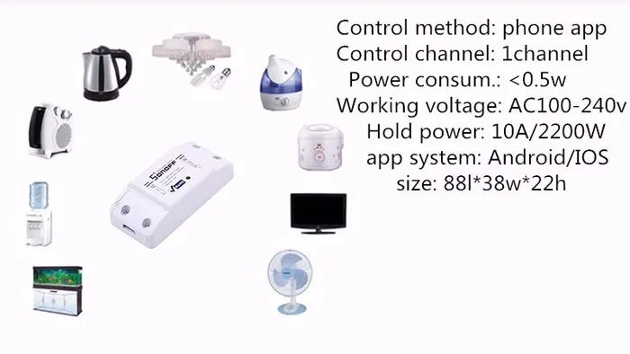 Sonoff is a low-cost, affordable device that help you to step into the amazing smart home.It is a WiFi wireless switch that can connect to appliance of different types and brands. Sonoff sends data to cloud platform through the WiFi Router, which enables you to remotely control all appliances with the App eWeLink on your smart phone. The server of Sonoff is AWS global server.
