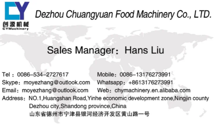 Chuangyuan Food Machinery Co,. LTD. established in 1996, we are a professional food machinery manufacturer.