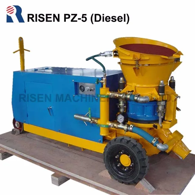 RISEN has engaged in the manufacturing and export of RISEN PZ-9 excellent dry and damp mix mobile shotcrete machine -shotcreting machine since 2004. Among RISEN PZ series, the PZ-9 is a large-size model with output 9m3/hour and is a very popular model, mainly applied for dry or damp mix shotcreting.