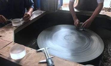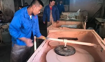 Workers is polishing the quartz material with polishing wheels. Polishing wheels are composed of canvases, felts and leather. The quartz piece is clamped by metal disks with polishing agent. The quartz piece become dazzling light after the speed of 20m/s..
