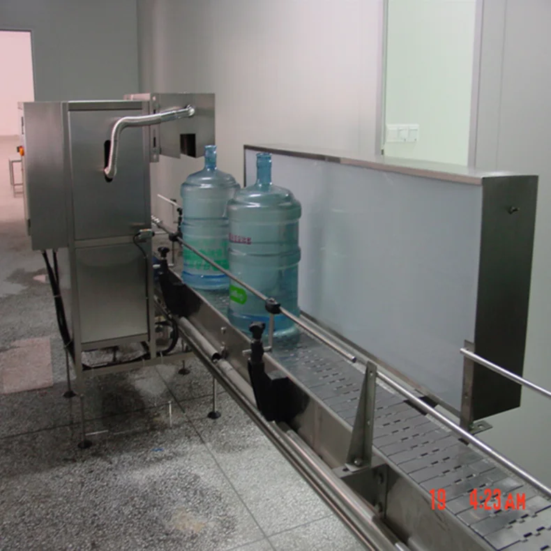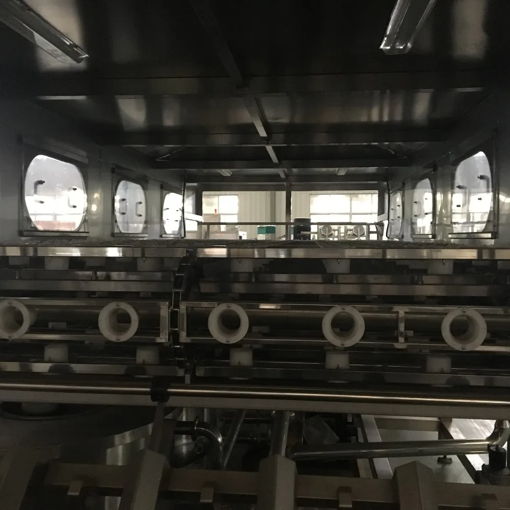 Automatic barrel outer brushing machine specially work with 5 Gallon barreled water producing line. It is used for reducing the settling caused by the mineral water itself and some algae substances in the process of mineral water producing. The machine is made of excellent stainless steel with the advantage of easily-rinsing and corruption-resistance. The main electrical elements adopt the products with brands of SIEMENS and OMRON. Pneumatic elements adopt the products with brand of AIRTAC.
