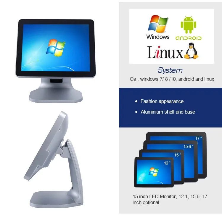 Aluminum Epos Hardware Flat LCD Touch Screen Retail Windows POS Terminal