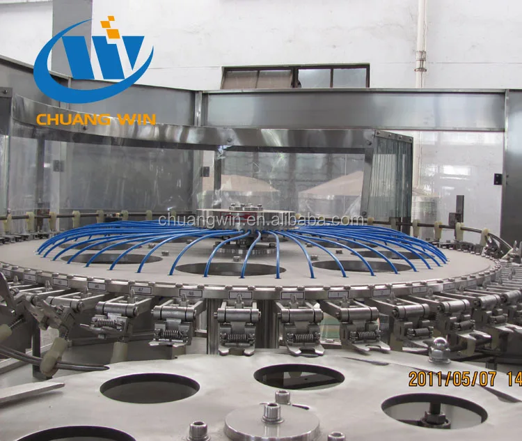 The filling machine combines washing,filling,capping into one working table.The production rate of this machine could reach to 24000 bottles per hour.