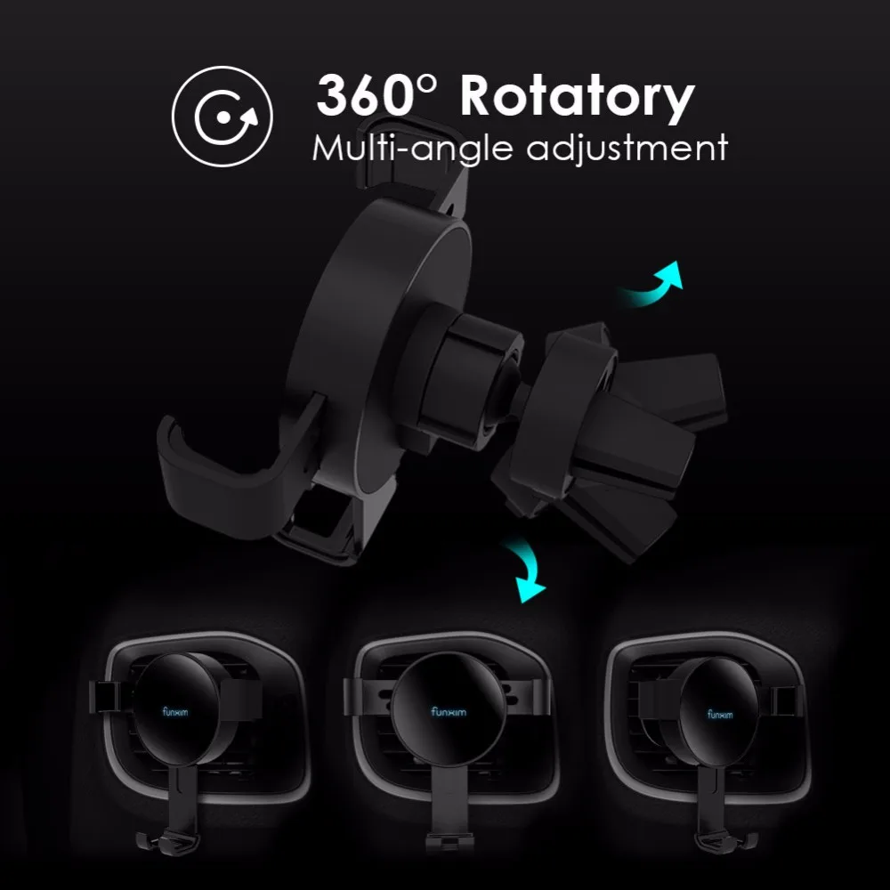 Clamp at the air vent in the car, only put your phone into it by a one-handed operation, locks automatically, 360-degree rotatory adjustment for your best angle viewing, safe charging and navigating, prevent bumping and shaking.