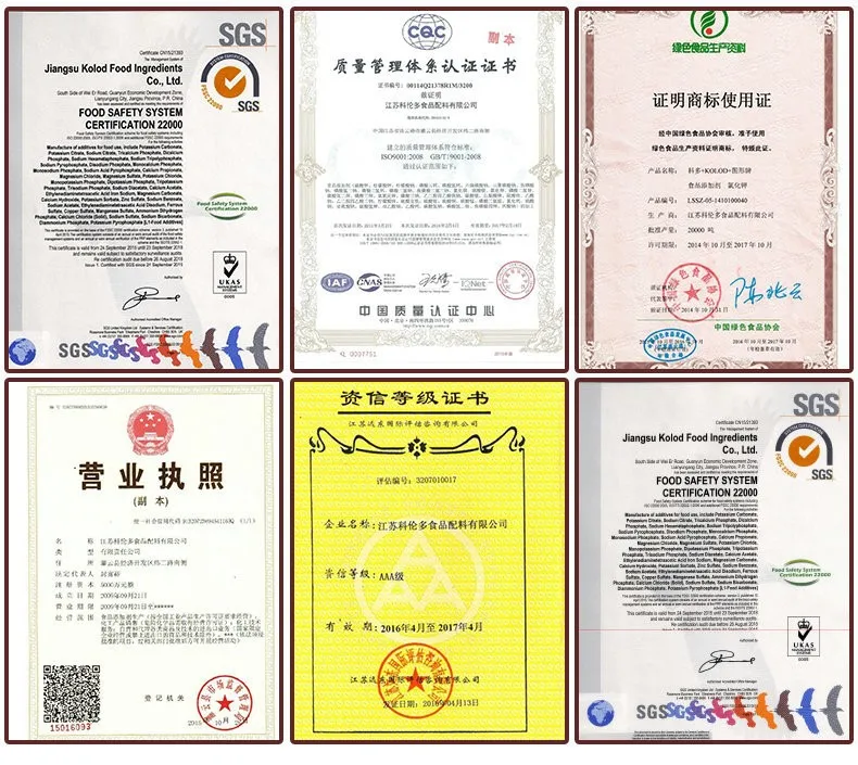 ISO9001, ISO14001, ISO22000, GMP, SGS, HALAH, KOSHER