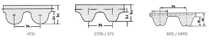 | Type | Pitch Pb(mm) | Tooth height ht(mm) | Belt thickness hs(mm) | Angle β° | Details |