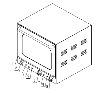 4--Spray Switch 5--Spray Light 6--Upper Heating Thermostat 7--Upper Heating Light 8--Temperature Light 9--Thermostat