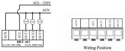 or turning off three loads respectively. BRT-412 timer switch also has wiring terminal blocks on its back.