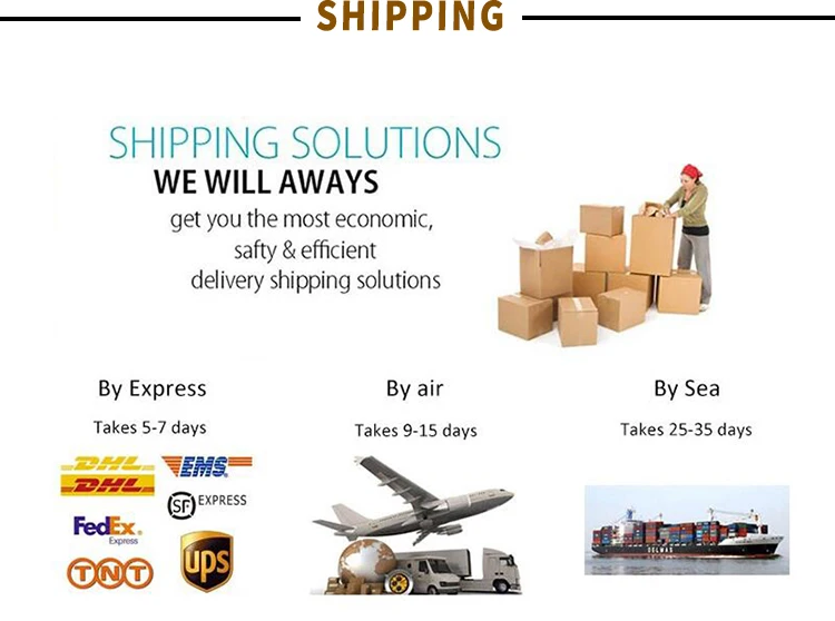 Q4. How do you ship the goods and how long does it take to arrive? A: We usually ship by Fedex, DHL, UPS or TNT. It usually takes 5-7 days to arrive. A2:-15-30 days by sea ship to local port.Shipping fee depends on the weight and shipping method