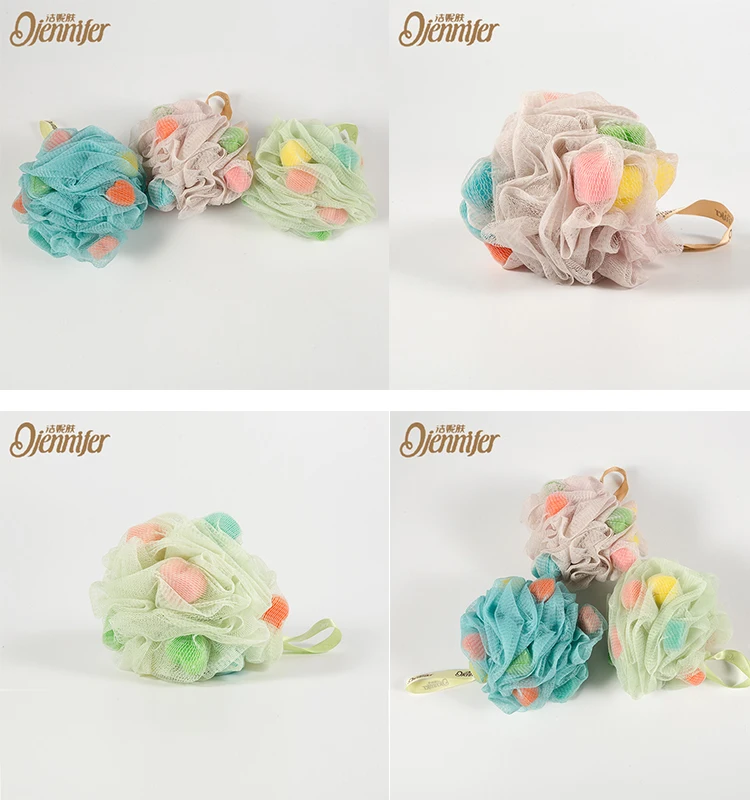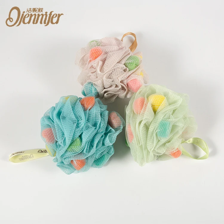 China Factory Shower Pouf Mesh Printed Loofah Bath Sponge