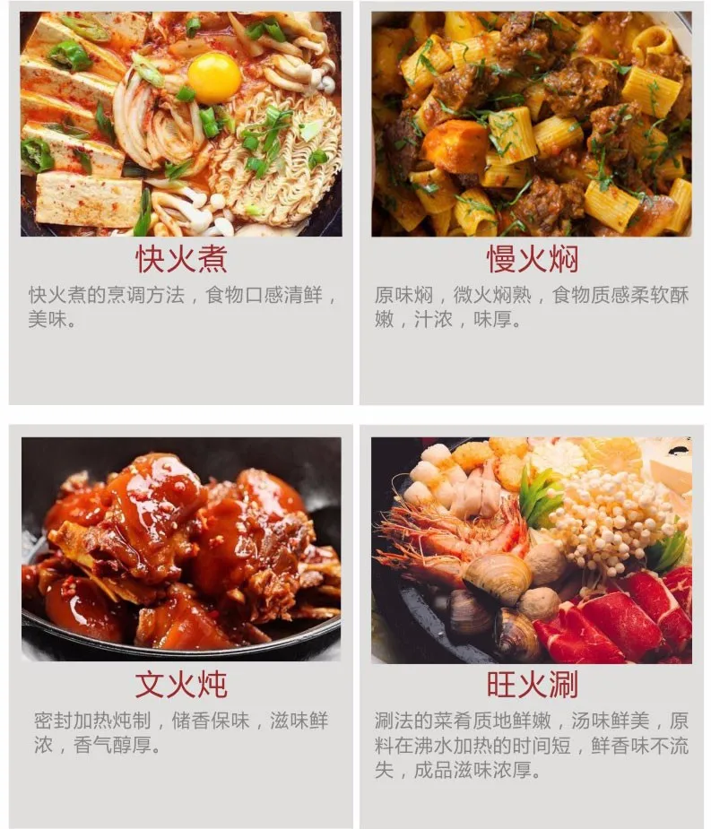 1. Many functions for your choose: cooking, stewing, braizing, frying, chaffy dish