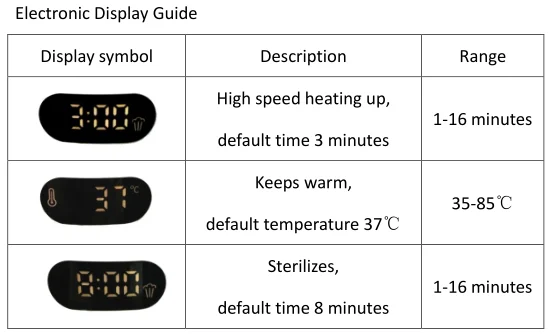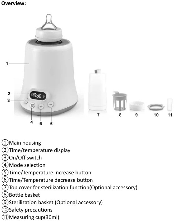 | Functions | Fasting heating, keep warm, sterilizer |