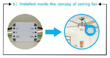 Fig. 7b BRT-690R Installed inside the Canopy of Ceiling Fan
