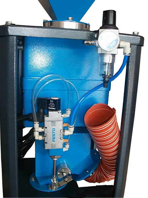 SMS series metal detecting separators are highly sensitive and accurate in detecting and separating metal grains, such as steel, iron, copper, aluminium, lead, tin, and so on. It can be installed directly on injection moulding machine or (extruders) hoppers to protect the screw of machine from the damage caused by hard metals. There are four models of the series: SMS-35~100, processing capacity can reach up to 400L/hr~12,000L/hr to meet any specific requirement.