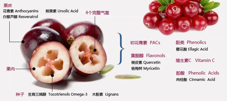 | The source of Berry | Canada Cranberry | Extraction Type | Ethanol/Water |