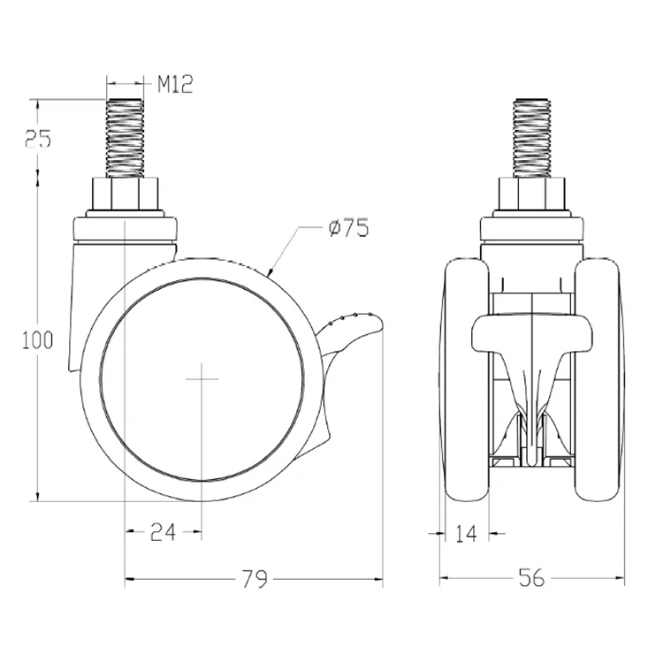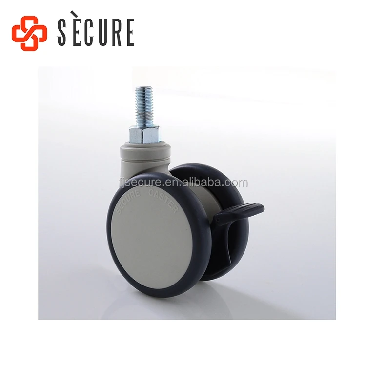 | Description | 1. Twin caster wheel with lock. 2. Body swivel axis and both wheels apply precision ball bearing. 3. Caster size: 75mm. 4. Fitting type: threaded stem:M12*25mm. 5. Used on beds, medical trolley, medical equipment, etc.. 6. Certification: CE, ISO9001 and ISO13485 approved