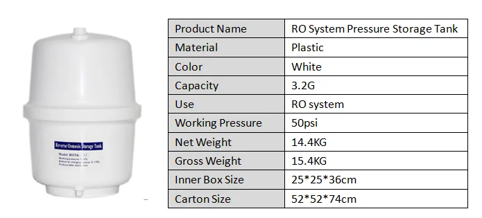 Best quality Plastic 3.2g ro storage tank