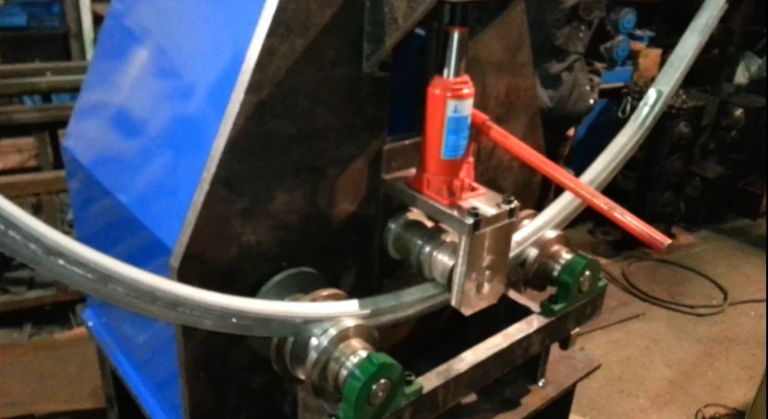 SEB-C3 enhanced pipe bending machine, which is the third generation. It can bend all size round pipe, square pipe and flat steel, rectangular pipe. Because we use the super-thick iron plate for the back and front, the back and front iron plate are milled together. So it can be sure the three shaft are concentric and coplanar. Then we can let the pipes in same plane after bend. Other machines can not finish it. You can got different size arc or circle through press down the middle shaft.