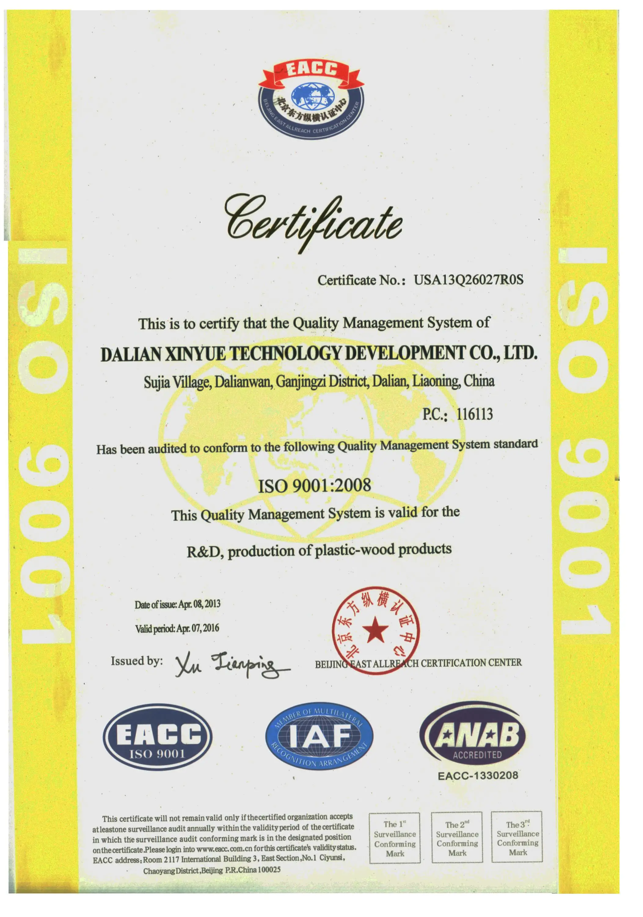 We invite Japanese engineer"Takai Yobo"as our long term technological guidance.Who is very professional wood-plastic compostite materials researcher with 40 years WPC experiences.
