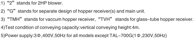9:Vacuum hopper receiver(THM type) can be mounted direct to machine hopper,glass-tube hopper ceceiver(TVH type) can be mounted direct to iniection inachine.