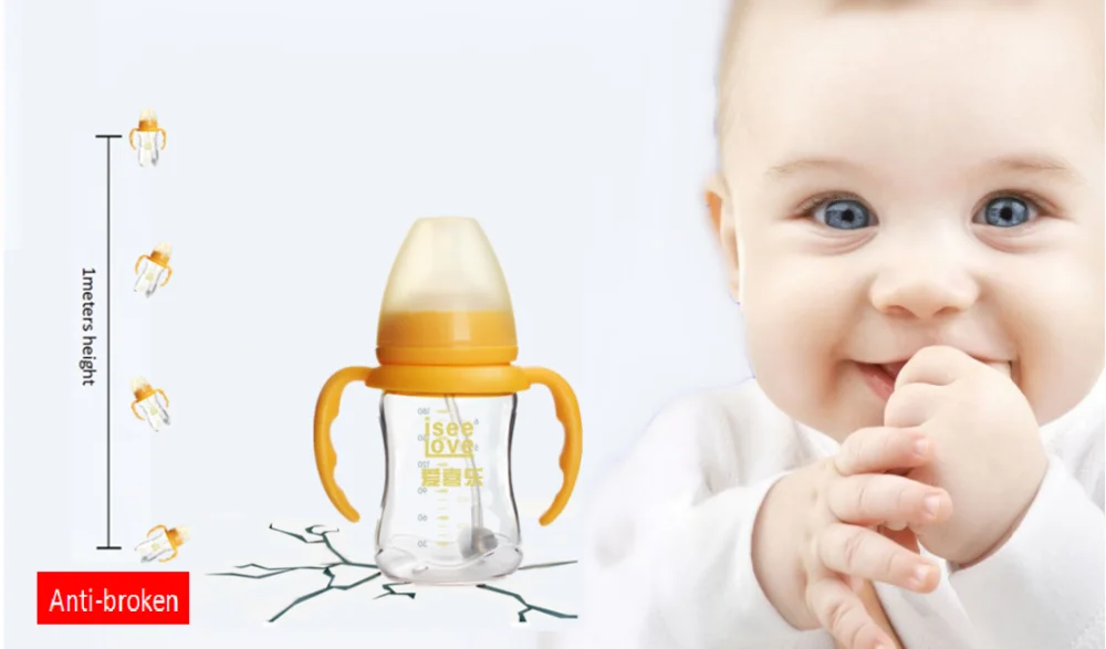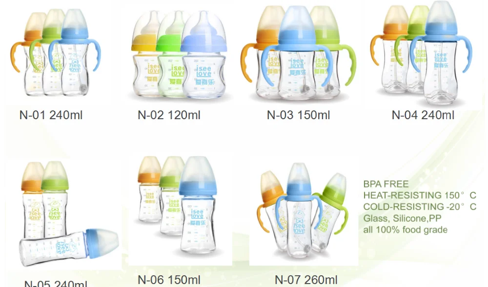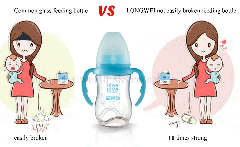 Product specification: 4oz bpa free custom high borosilicate glass baby milk bottle with handle | ||||||