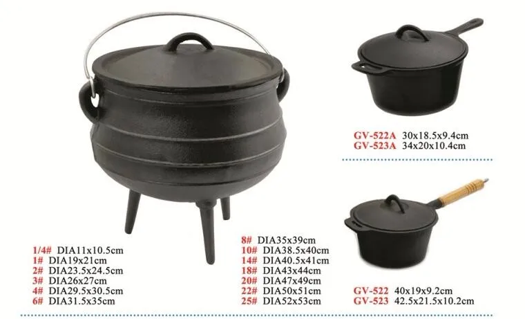 Three Legged Pre-seasoned Cast Iron Potjie Pot / South Africa Cast Iron Cauldron allows even heat distribution around the pot. It mainly used in outdoor campfire,home party cooking.