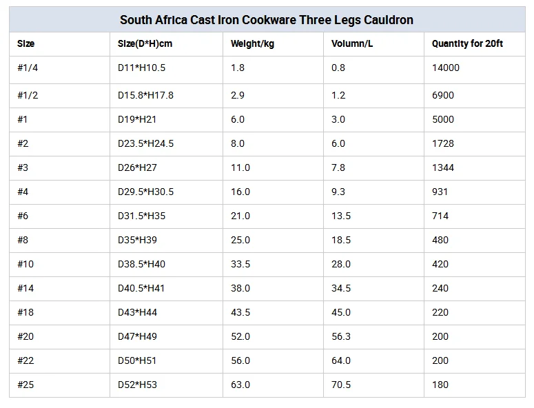 Name | Three Legged Pre-seasoned Cast Iron Potjie Pot | ||||||||||