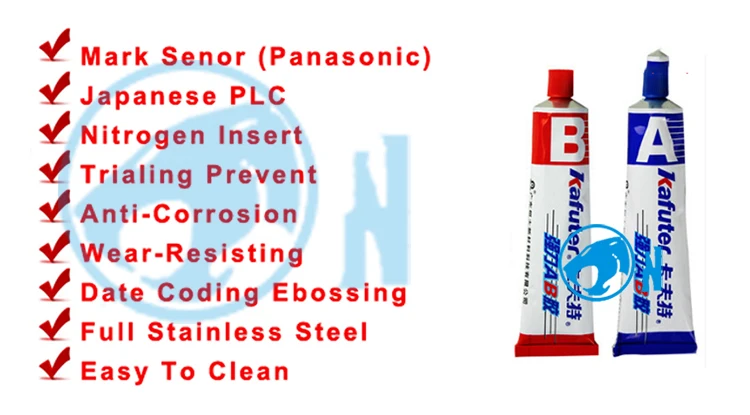 external heating, Nitrogen inserting and sealing, code printing, waste tail cutting, finished product