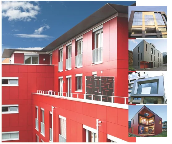Exterior façade – high pressure laminate as the name suggests is the ideal product for exterior cladding applications produced under great pressure and high temperature. Phenolic resins provide effective weather protection to the HPL cladding making it capable of withstanding erosion from natural elements. It comes with high UV resistance which makes it ideal for buildings requiring ventilated elevation façade cladding.