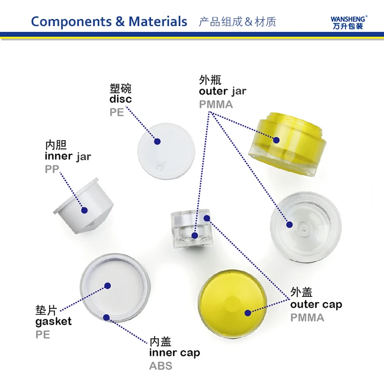 | Meterial: | outer cap:PMMA inner cap:ABS gasket:PE disc:PE inner bottle:PP outer bottle:PMMA | ||||