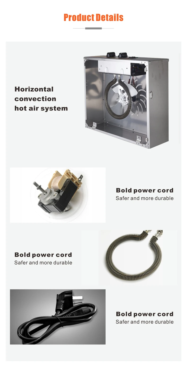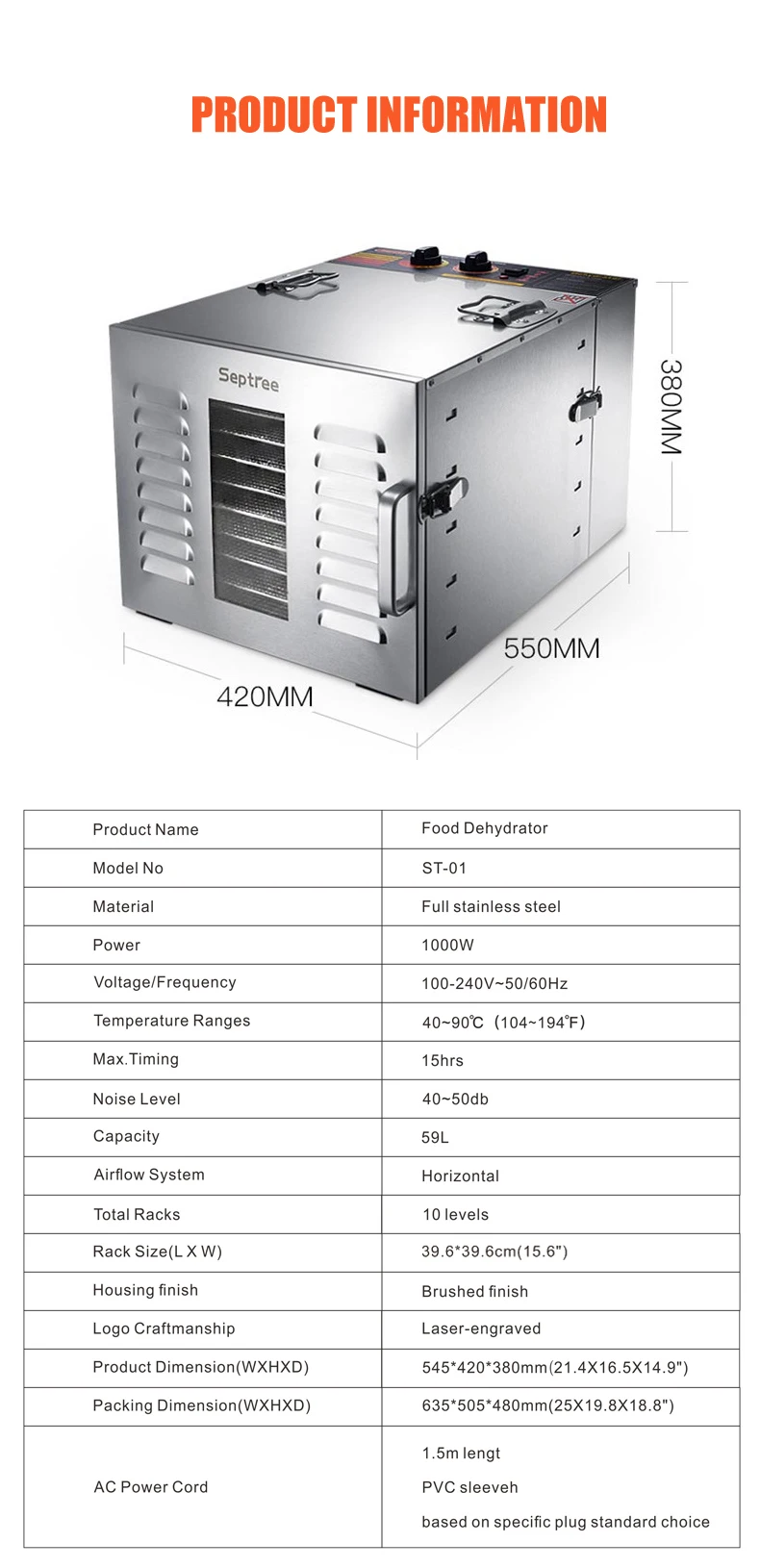 5. Thickened 0.8mm, brushed stainless steel shell. 304 food grade trays.