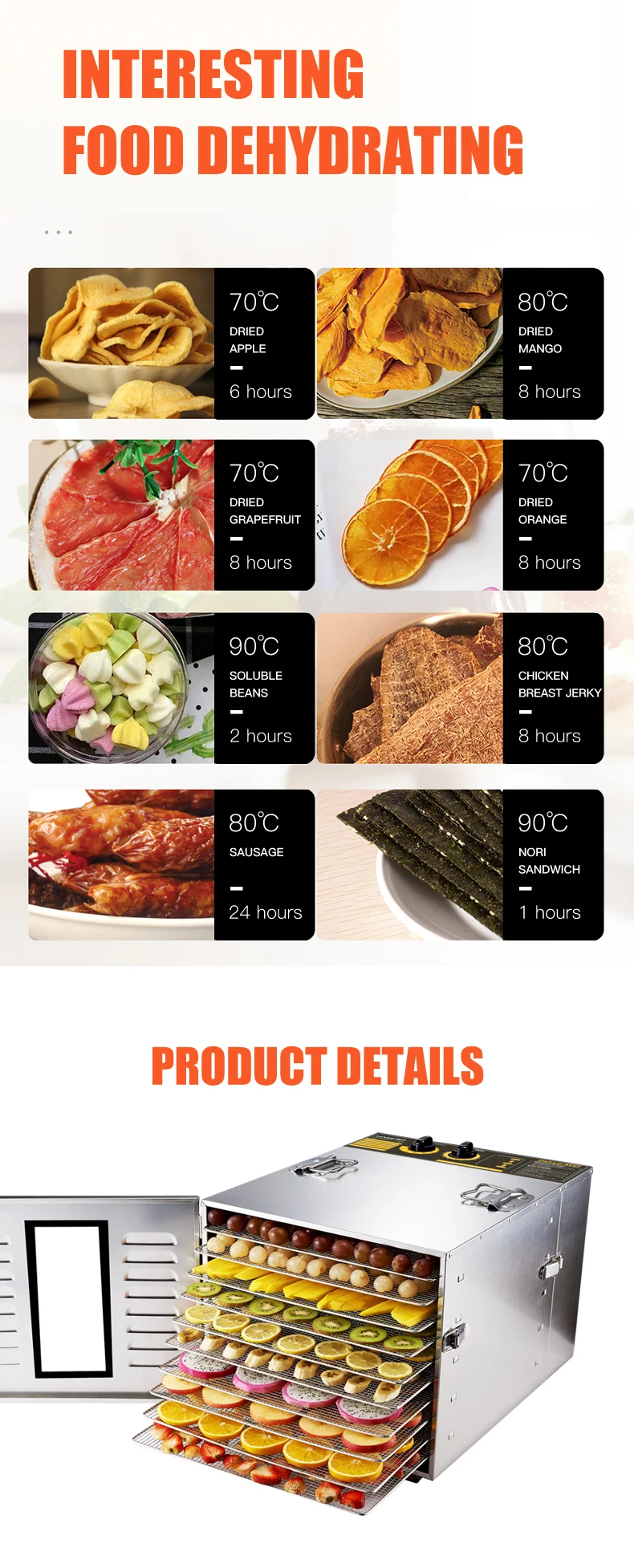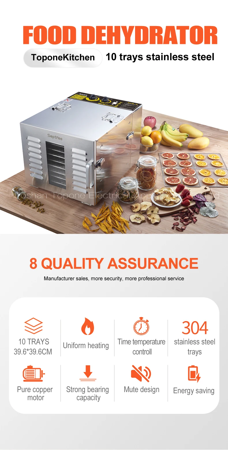 1. 10 trays large capacity, 15~20 kg at a time.