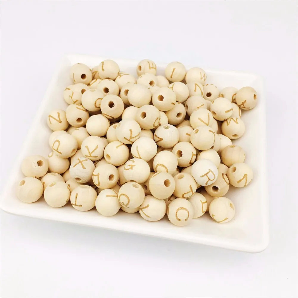 14mm DIY Name Small Wooden Alphabet Custom Personalized Engraved Beads